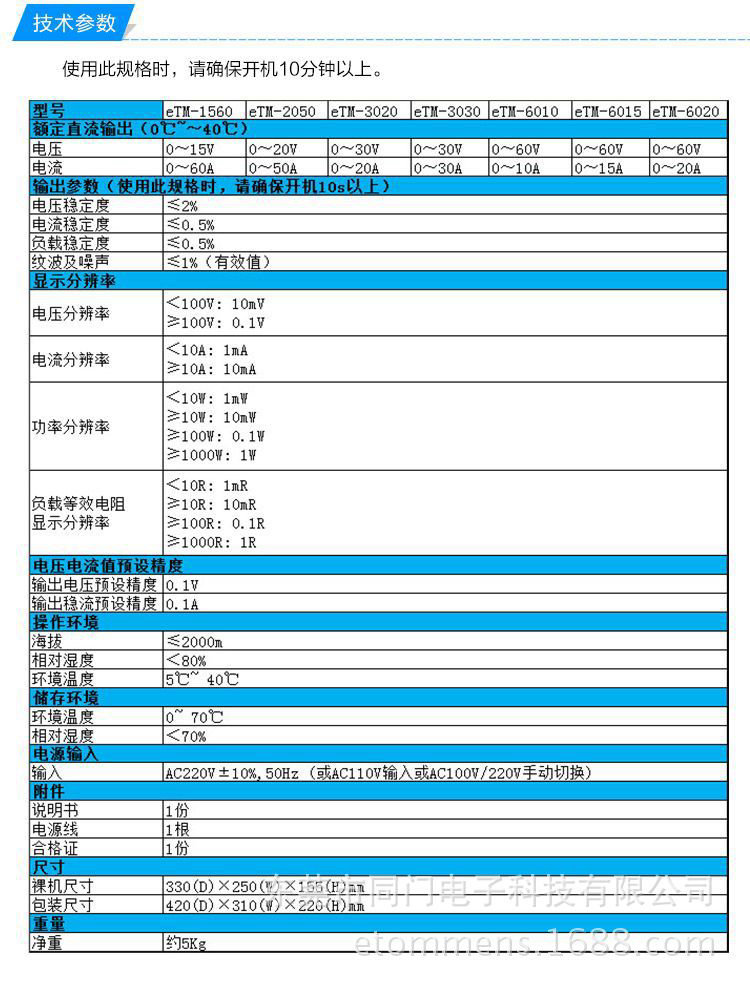 同門 eTM-3020plus 穩(wěn)定 大功率 高精度 開關(guān)電源 600W 30V 20A
